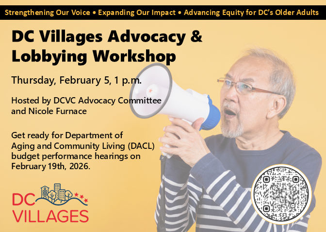 Virtual EventDC Villages Collaborative (DCVC) is hosting its second informative and interactive Advocacy Workshop designed to equip Villages and aging advocates with the tools, confidence, and shared language needed to influence policy at a […]